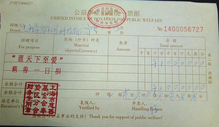 眾幸股份的下屬公司上海尊島防護(hù)科技有限公司響應(yīng)四團(tuán)鎮(zhèn)人民政府的號(hào)召,積極參與公益事業(yè),為第二十二屆“藍(lán)天下的至愛(ài)”慈善活動(dòng)添磚加瓦,貢獻(xiàn)自己的綿薄之力。